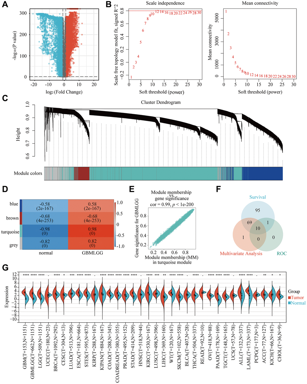 Glioma mRNA expression data and clinical samples was collected from the TCGA Database (https://portal.gdc.cancer.gov/) and GTEx Database (https://commonfund.nih.gov) [8]. This study comprised 1158 normal samples and 706 GBMLGG samples for the gene expression profile. Clinical data from 599 GBM patients and 516 LGG patients were collected.