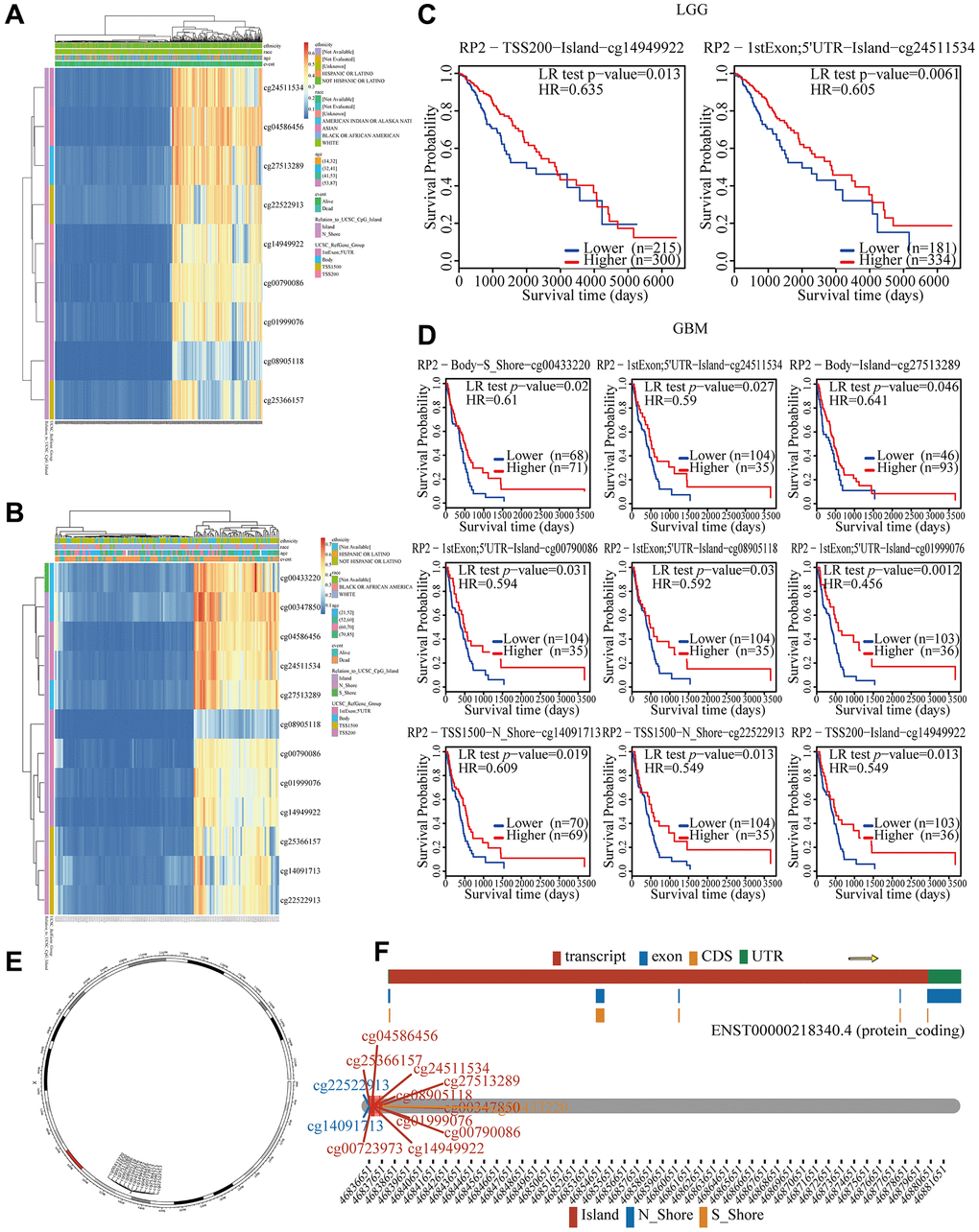 Correlation between RP2 hypomethylation and prognosis in LGG and GBM