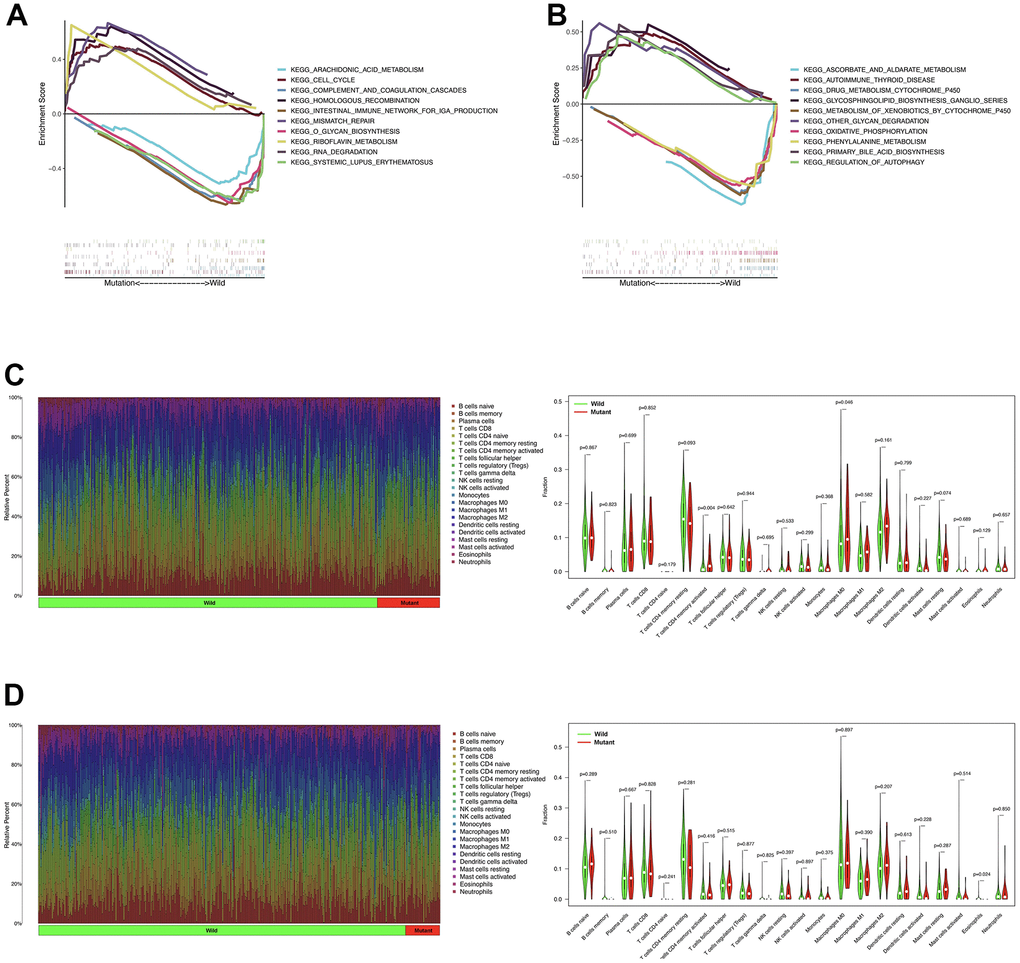 To explain why PTPRD mutations were associated with favorable ICIs prognosis, we evaluated the role of PTPRD mutation in GSEA and immune infiltration. The GSEA enrichment analysis showed that PTPRD mutation samples were mainly associated with riboflavin metabolism, RNA degradation, cell cycle, and mismatch repair in LUAD, and glycosphingolipid biosynthesis ganglio series, other glycan degradation, bile acid biosynthesis, and regulation of autophagy in LUSC, respectively. Besides that, we found that activated memory CD4 T cells, M0 macrophages, and eosinophils were more enriched in PTPRD mutant sample. Some studies revealed that eosinophils were closely associated with clinical outcomes in patients with ICIs treatment [42–44]. The mutation of PTPRD may influence CD4+ T cell infiltration via its phosphatase activity, and promote the occurrence of “hot” TME with enhanced anti-tumor immunity in advanced NSCLC patients.