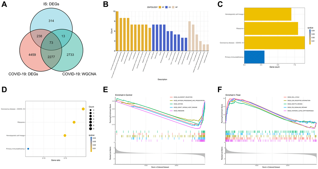 Functional and pathway enrichment analysis of intersect genes of COVID-19 and IS