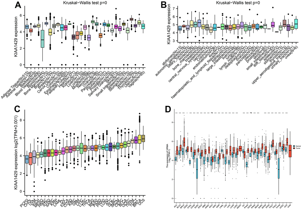 Differential analysis of KIAA1429 expression between tumor and normal tissues