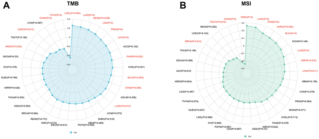 Correlation between KIAA1429 expression and tumor mutational burden (TMB), microsatellite instability (MSI)