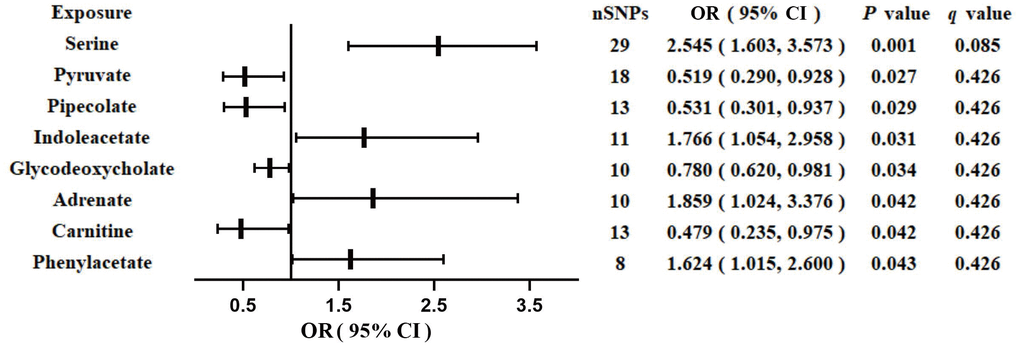 | Phenylacetate | 24.02 | 1.624 (1.015,2.600) | 0.043 | 1.804 (1.142,2.849) | 0.016 | 1.570 (0.732,3.371) | 0.251 | 1.868 (1.005,3.474) | 0.054 | 1.921 (0.423,8.630) | 0.425 | ||||||||||||||||||||||||||||||||||||||||||||||||||||||||||||||||||||||||||||||||||||||||