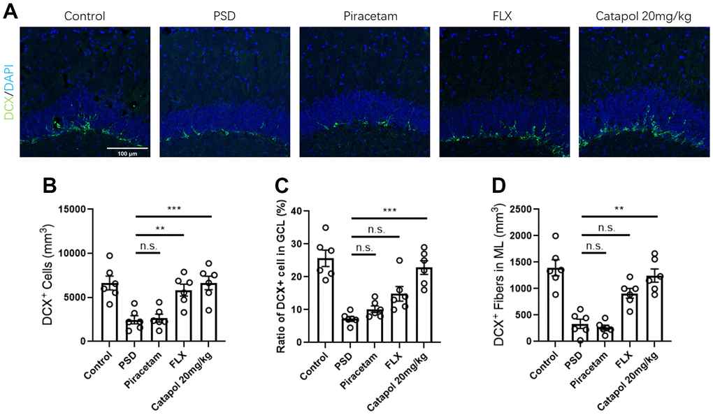 Catapol treatment enhanced the hippocampal neurogenesis in PSD model