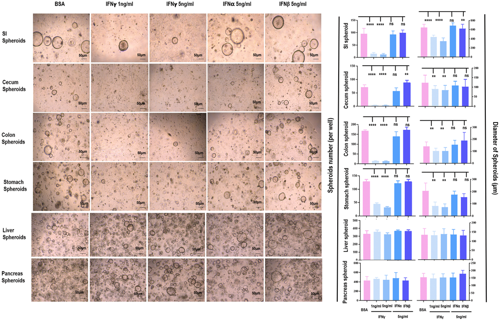 IFNγ is the key cytokine inhibiting SI spheroid growth