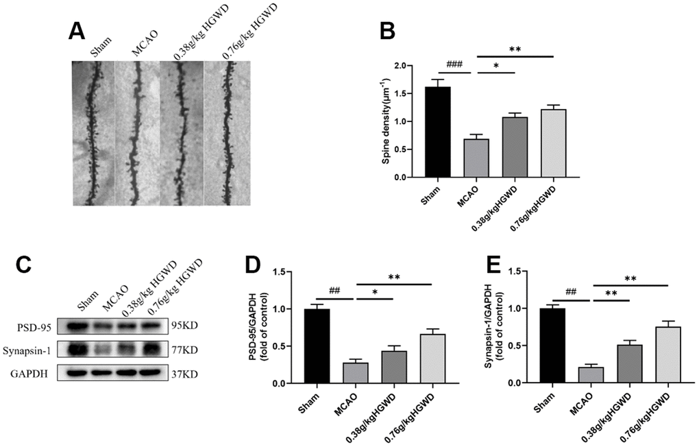 HGWD increased dendritic spine density and enhanced synaptic plasticity in MCAO rats