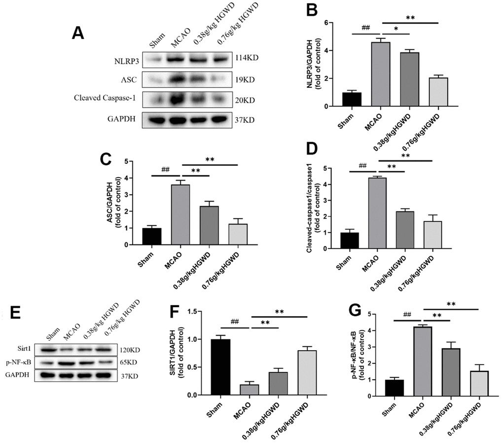 HGWD modified Sirt1/NF-κB/NLRP3 pathway in the hippocampus of MCAO rats