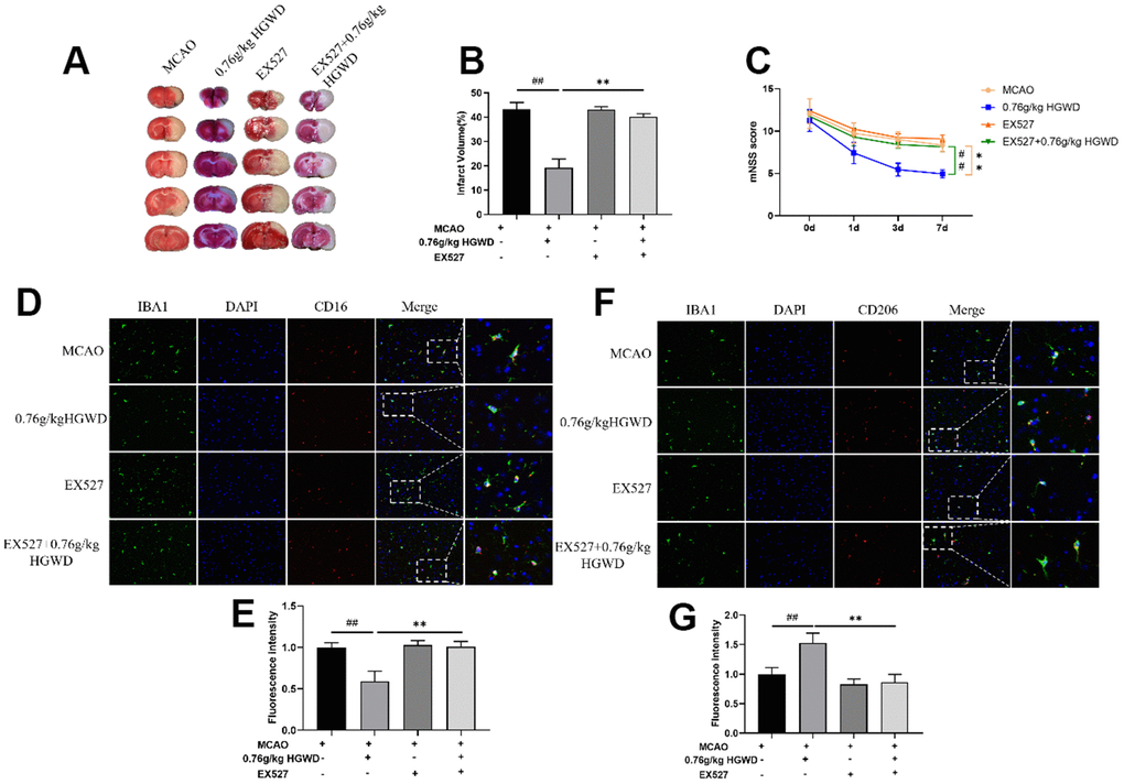 Inhibition of Sirt1 weakened the neuroprotective effect of HGWD in vivo