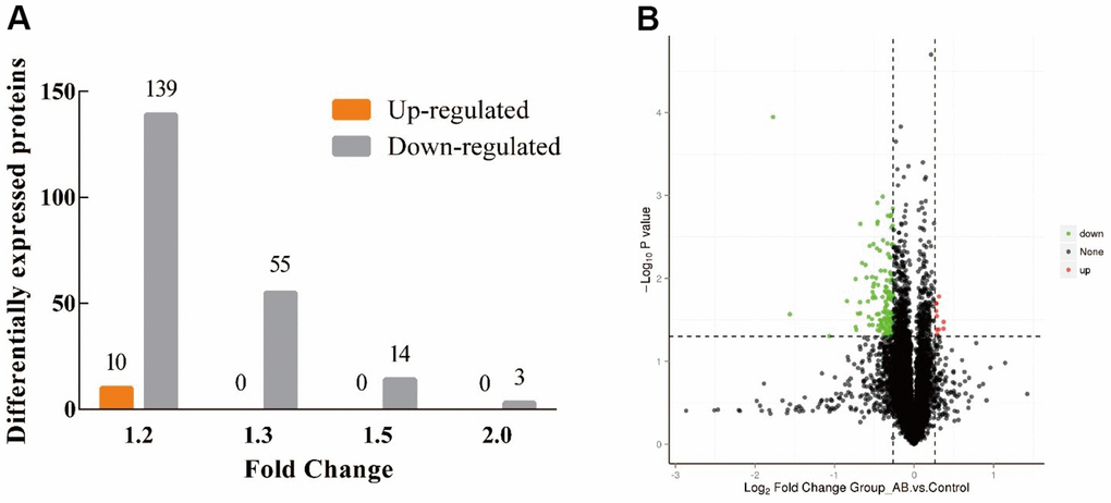 Mus_musculus_uniprot_2021_7_15 (86544 sequences) database was used to search the resulting spectra by the search engines: Proteome Discoverer 2.4 (PD 2.4, Thermo Fisher, USA). The searched parameters are carried out according to the previous study [14]. The quantitation results were analyzed by T-test, p < 0.05, and |log2 Fold Change (FC)| > 0.25 were considered as a significant difference, and the proteins were defined as differentially expressed proteins (DE proteins, DEPs).