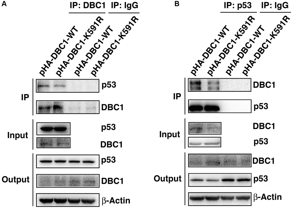 DBC1 interacts with p53 and this interaction is attenuated between DBC1-K591R and p53