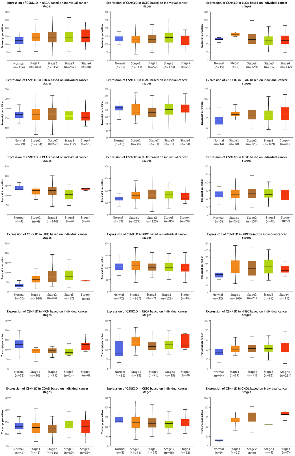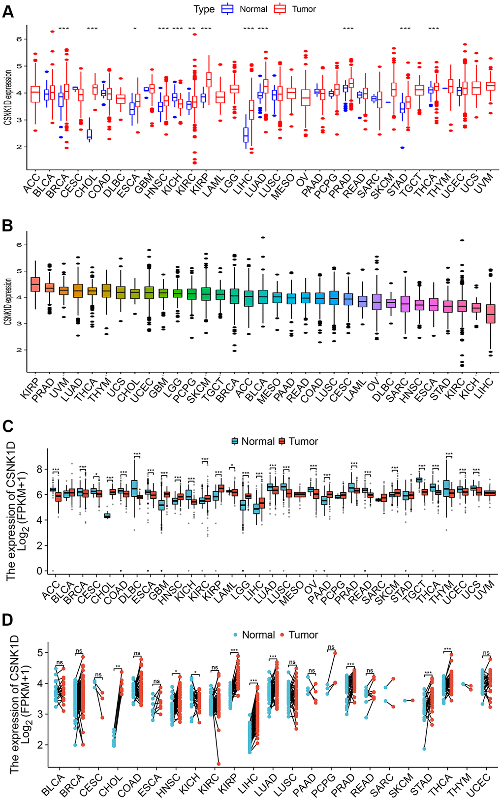 The CSNK1D expression in multiple human tumors
