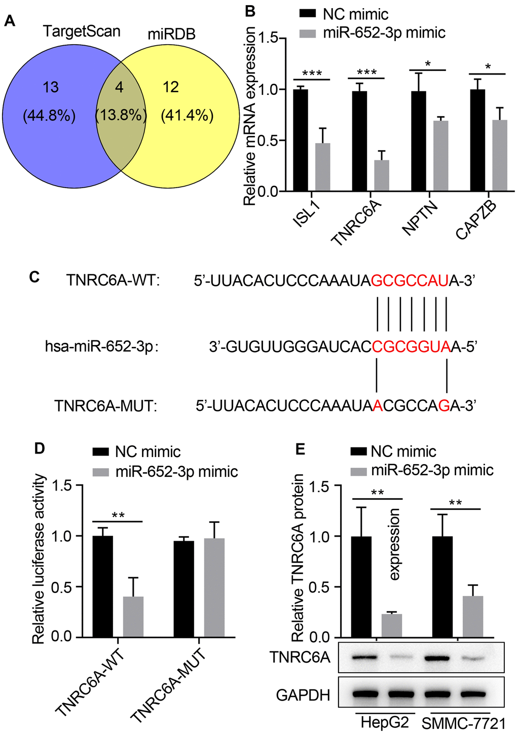 TNRC6A is a direct target of miR-652-3p in human HCC cells