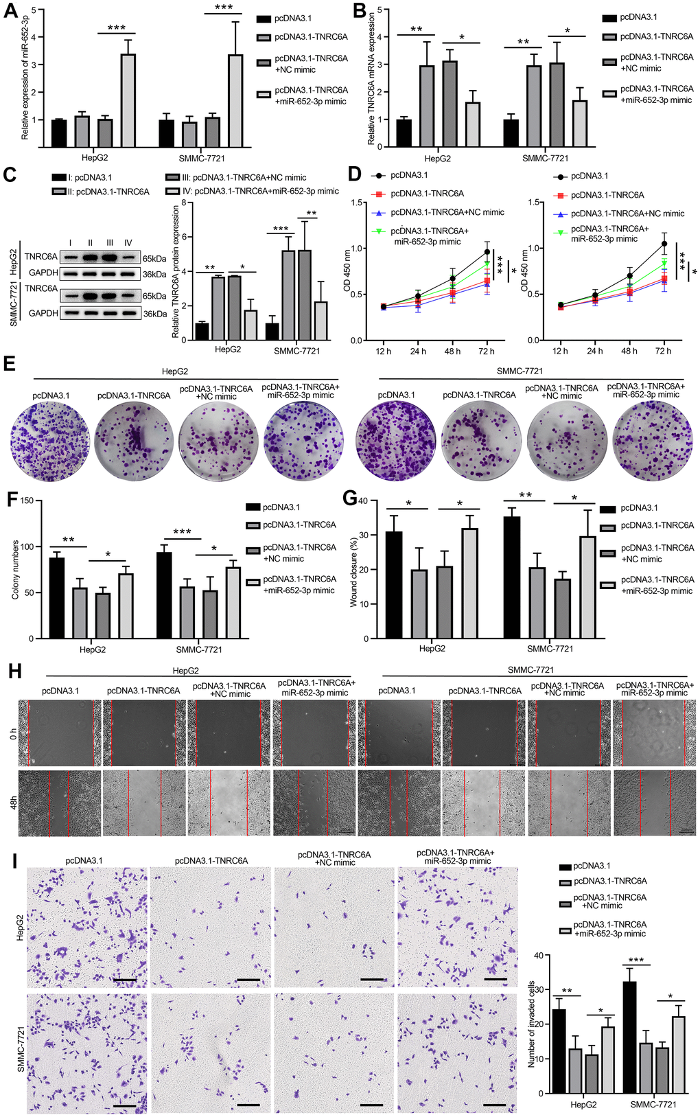 Overexpression of miR-652-3p aborted the inhibitive effects of TNRC6A on the proliferation and metastasis of HCC cells