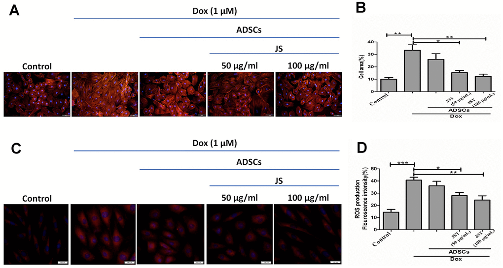 JS-preconditioned hADSCs inhibited Dox-induced cellular hypertrophy and mitochondrial ROS generation in H9c2 cells