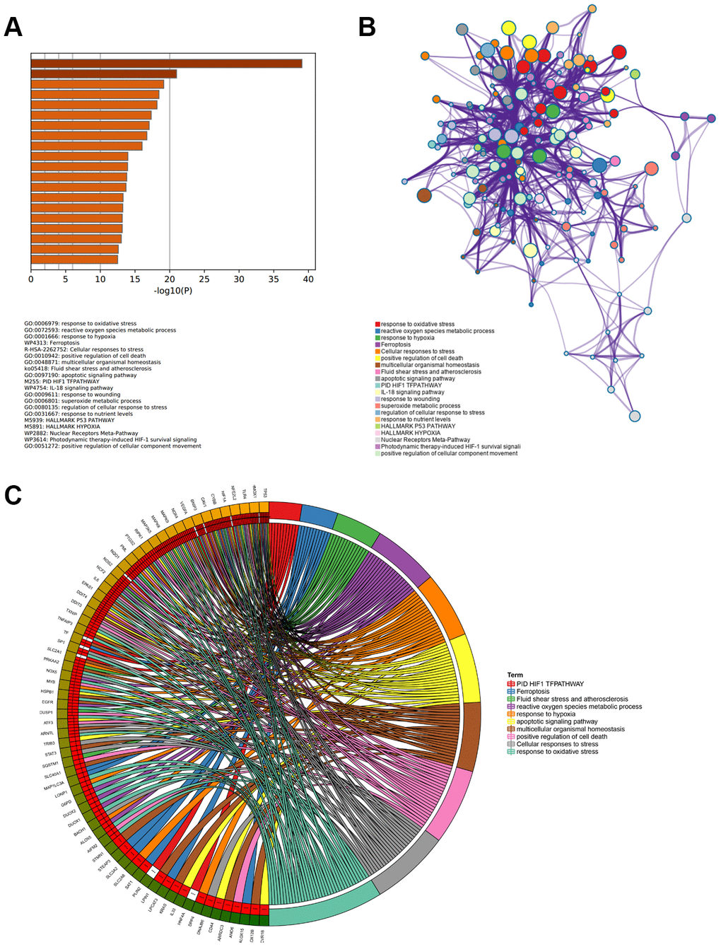 Metascape (http://metascape.org) is a reliable platform for gene list enrichment analysis [36]. Based on the function, we used the Custom Expression module to verify the enriched and related neighbor pathway of ferroptosis-related DEGs. The chord plot was drawn by Sangerbox tools.