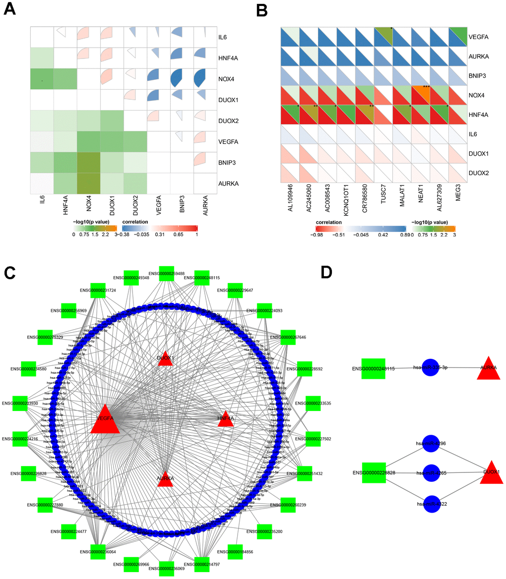 The intersections of predicted miRNAs by hub ferroptosis-related DEGs and DE lncRNAs were selected to construct lncRNA-miRNA-mRNA ceRNA network. Based on the ceRNA network theory [43], the lncRNA positively correlated to the mRNA would be selected. The lncLocator was used as a subcellular localization predictor to further screen lncRNA [86]. Cytoscape software was used to depict network plot and found the mRNAs and lncRNAs with the highest degree of connection.