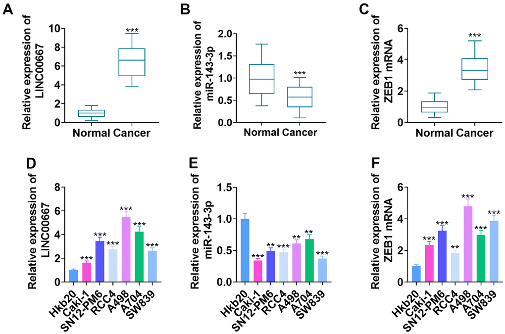 Alterations in LINC00667, miR-143-3p, and ZEB1 levels in ccRCC tissues and cells