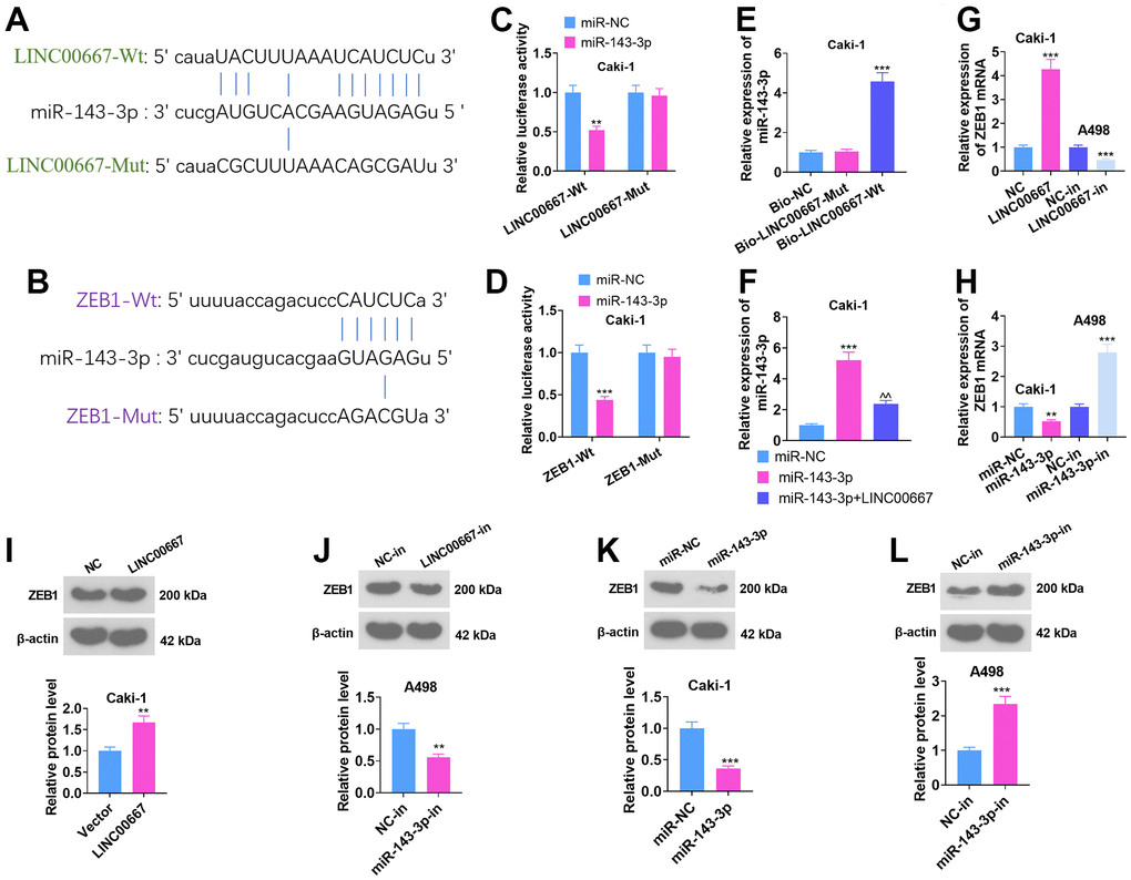 The regulation of ccRCC cells’ biological functions by LINC00667-miR-143-3p-ZEB1 axis
