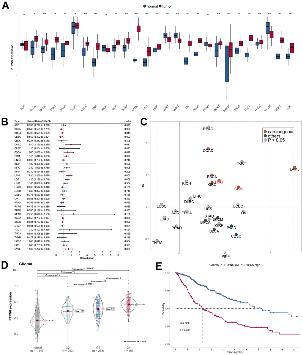 Functional analysis of PTPN6 in pan-cancer and glioma