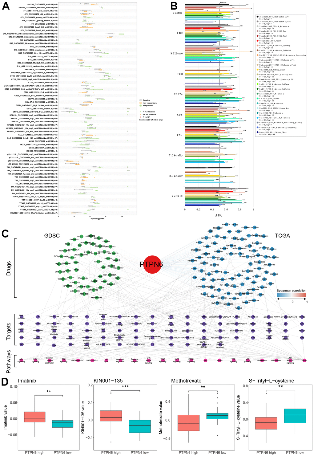 Integrative analysis of PTPN6 on immunotherapy and drug response