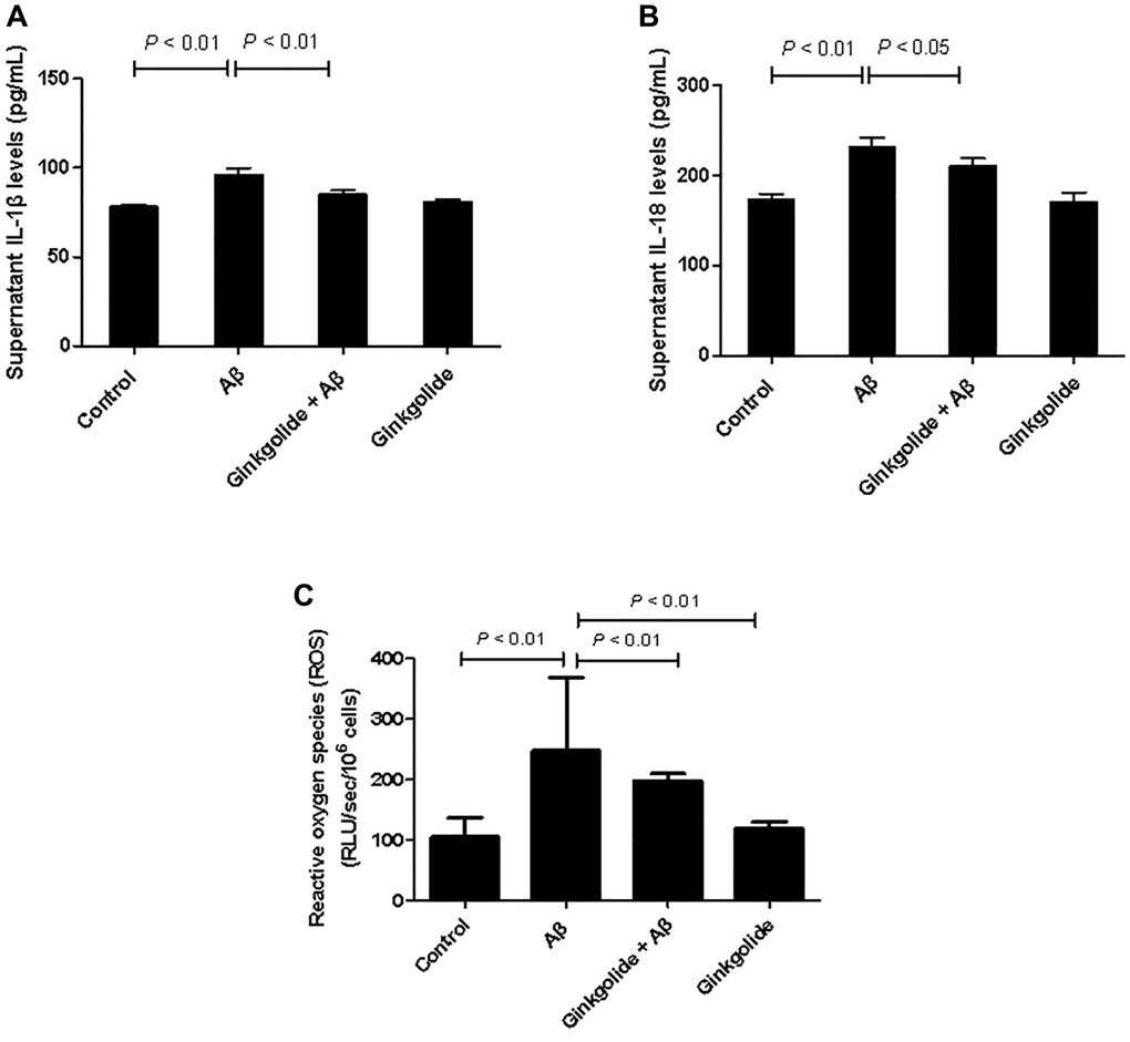 Ginkgolide suppressed production of pro-inflammatory cytokines and ROS in Aβ1–42-stimulated BV-2 cells