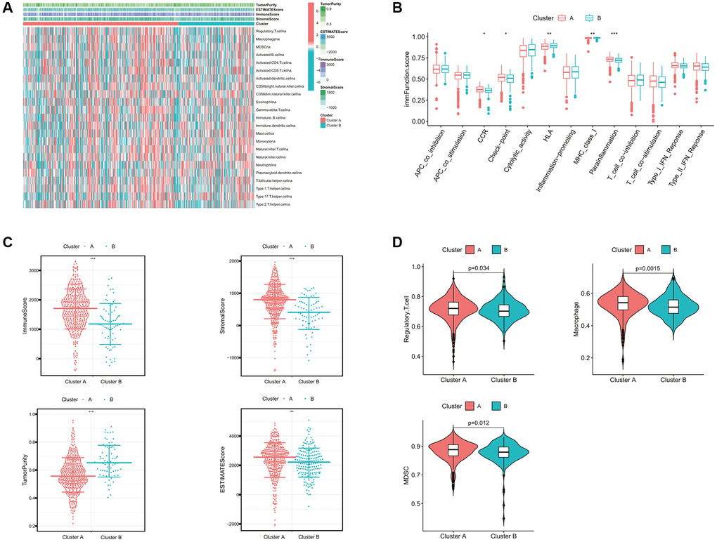Eight algorithms were used to compare the immune infiltration status between subgroups, including the ssGSEA algorithm and the corresponding gene sets used [21]. The ESTIMATE algorithm allowed for quantitative comparison of immune correlation status among GMRS subgroups using 4 kind scores [22].