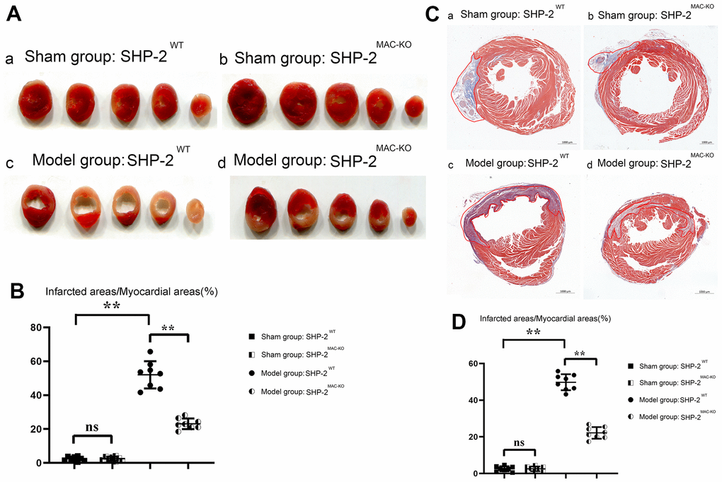 SHP2MAC-KO could reduce myocardial infarct size in mice