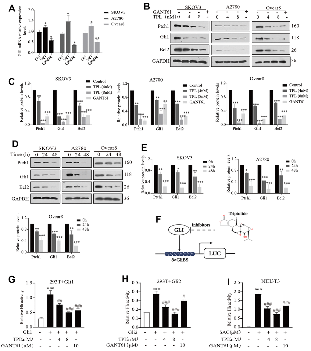 Triptolide inhibits the Hh pathway activity in EOC cells