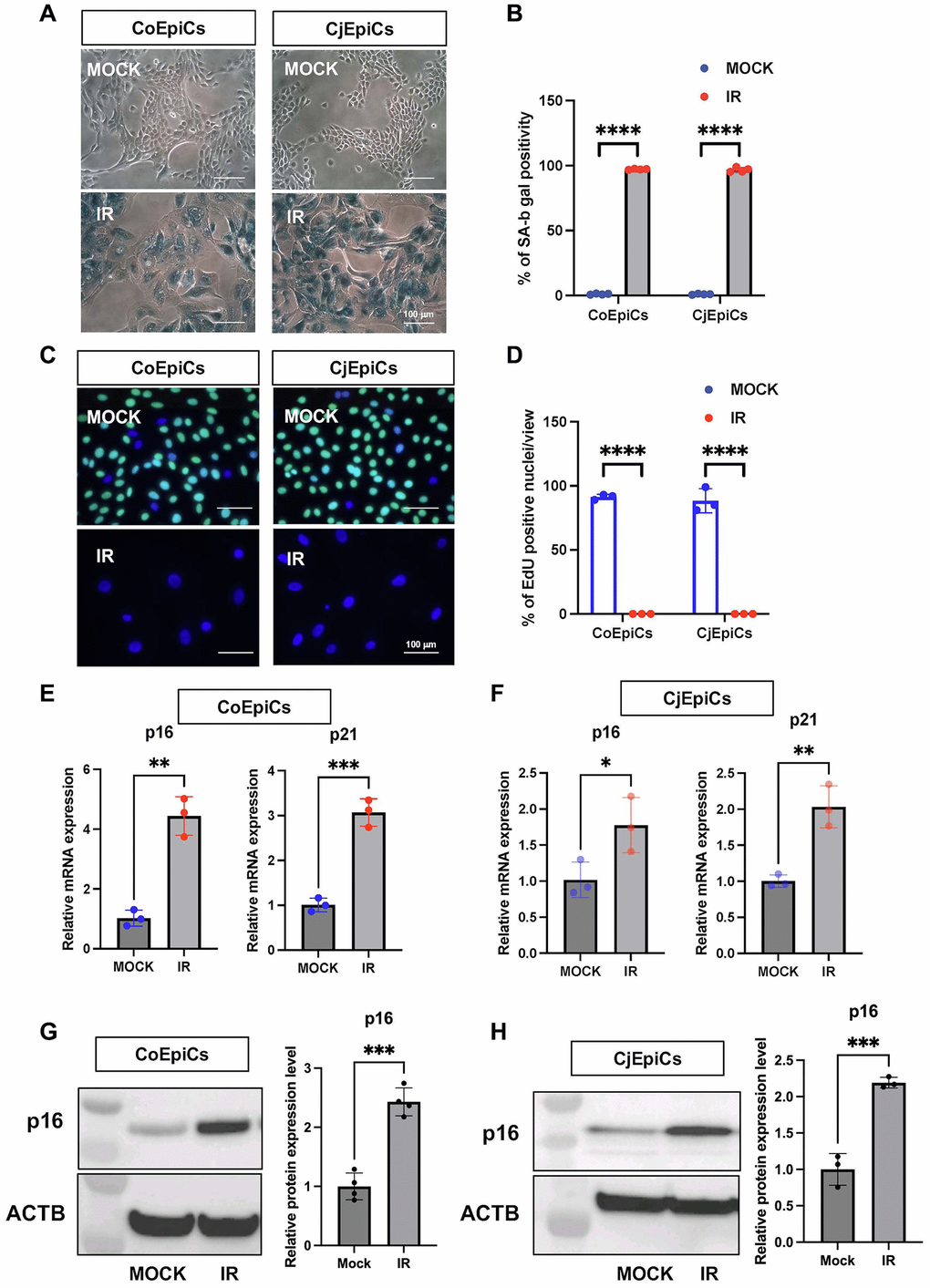 Senescent CoEpiCs and CjEpiCs were induced using ionizing radiation (IR; 10 Gy X-ray) according to previous reports [10, 18]. The irradiated cells were cultured for 10 days to allow the development of senescent characteristics. Mock radiation was applied to cells as a control treatment.