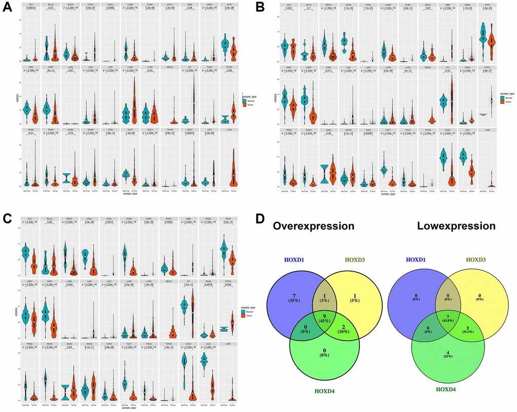 HOXD1, HOXD3, and HOXD4 expression in pan-cancer
