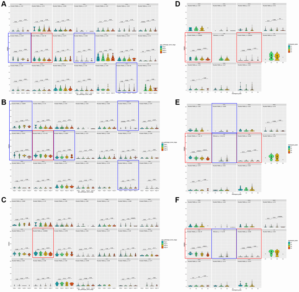 The data on clinical stage and grade of cancers were obtained from the UCSC Xena website (https://xena.ucsc.edu). The tumor tissues were mated to different clinical stages and pathological grades, which were used to evaluate the correlated HOXD1, HOXD3, and HOXD4 expression with the clinical progress of various cancers.