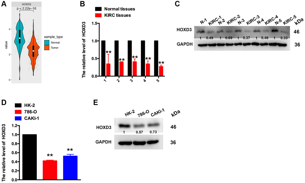 HOXD3 is down-expressed in KIRC tissues and cell lines