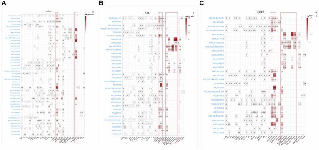 Single-cell analysis of HOXD1, HOXD3, and HOXD4 in cancers