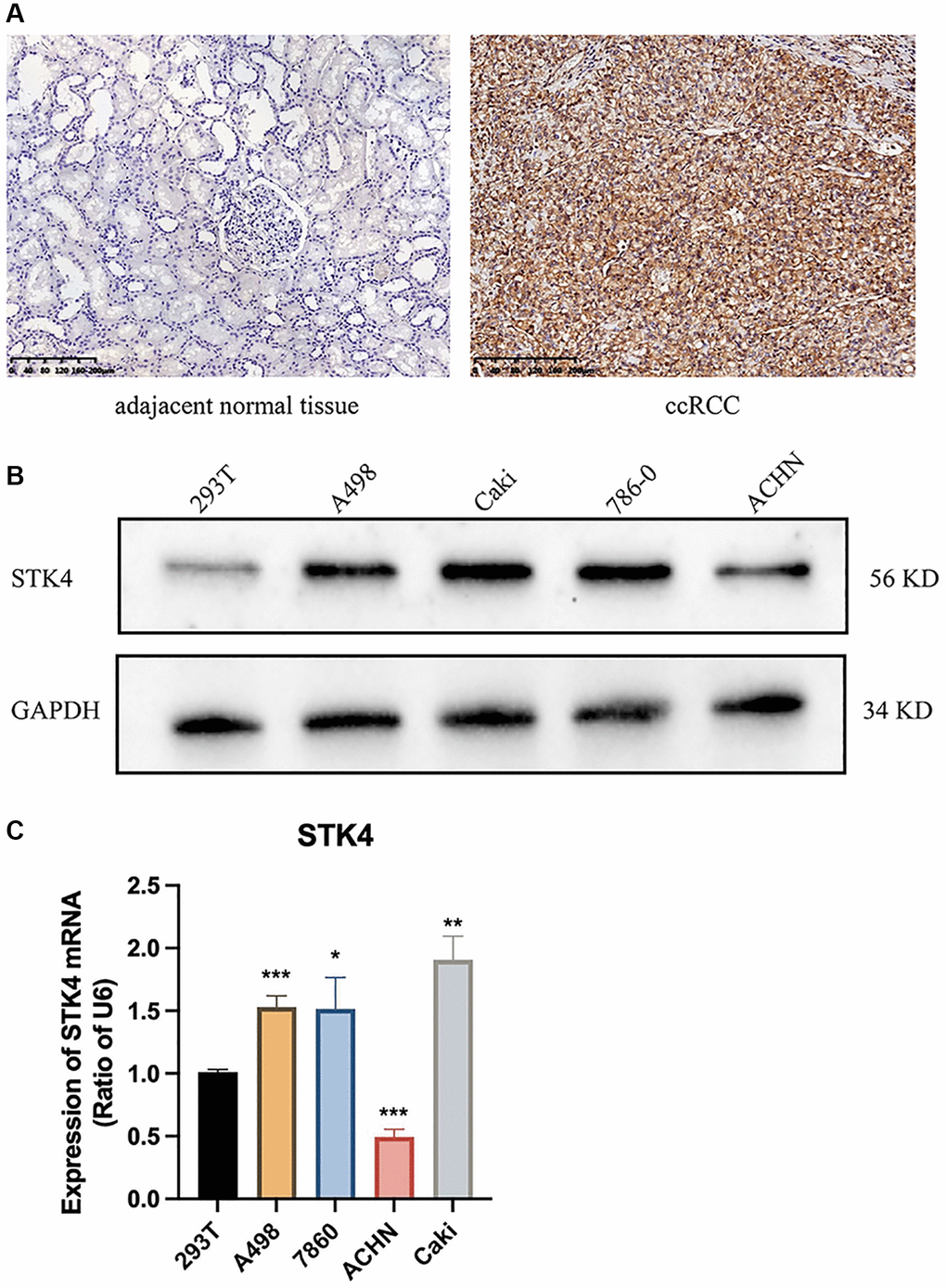 Experiments verification of the expression of STK4 in ccRCC