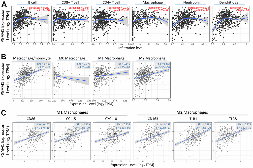 Correlation analysis between PGAM1 and infiltrating immune cells