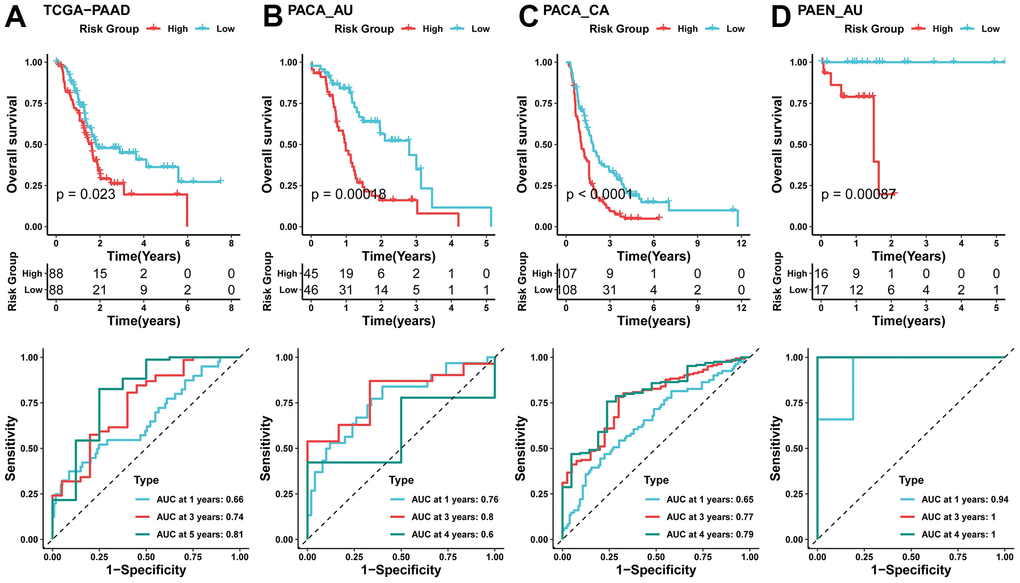 The clinical phenotype data of three external validation datasets: PACA_AU, PACA_CA, and PAEN-AU were downloaded from the ICGC database. The samples lacking survival time and survival state were removed, and all those with survival time greater than 0 days were saved. Meanwhile, the corresponding expression profile data (log2 (TPM)) was downloaded.