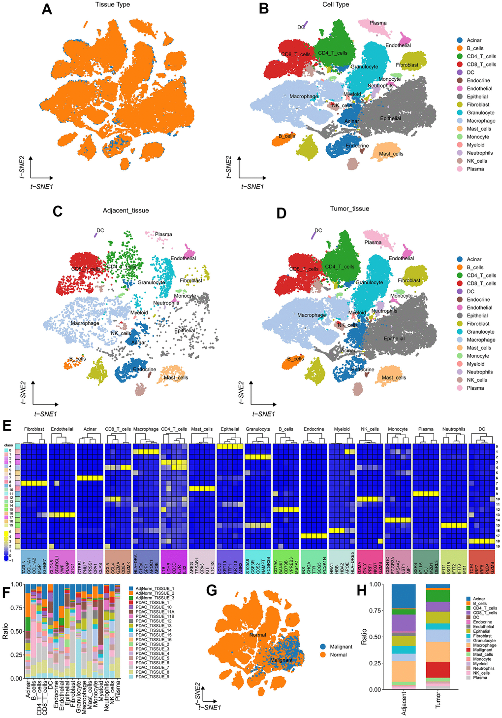Single-cell sequencing data in the GEO database, GSE155698, was downloaded. It contained 16 pancreatic cancer tissue samples and 3 adjacent normal pancreas samples. The procedure of single-cell sequencing is exerted using the Seurat package in R software.