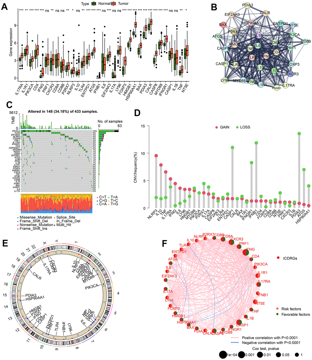 In both normal and tumor tissues for GC, the Wilcoxon test was employed to conduct a comparative analysis of the differential expression of ICDRGs. Furthermore, a protein-protein interaction analysis was applied by using the STRING database (https://string-db.org/) to investigate the plausible association of ICDRGs.