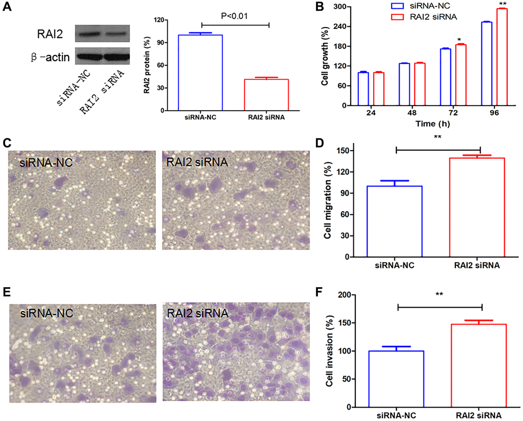 RAI2 knockdown promoted the growth and invasion of GC cells