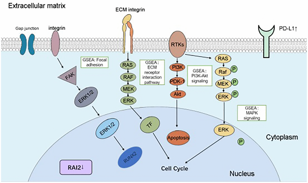 In summary, our research delivered evidence at multiple levels for the crucial role of RAI2 in GC growth and invasion and its capacity as a predictor in immunotherapy for GC through reducing PD-L1 expression in conjunction with being relevant to TILs (Figure 8). These results noticed an avenue for the research and development of anti-cancer methods in GC.
