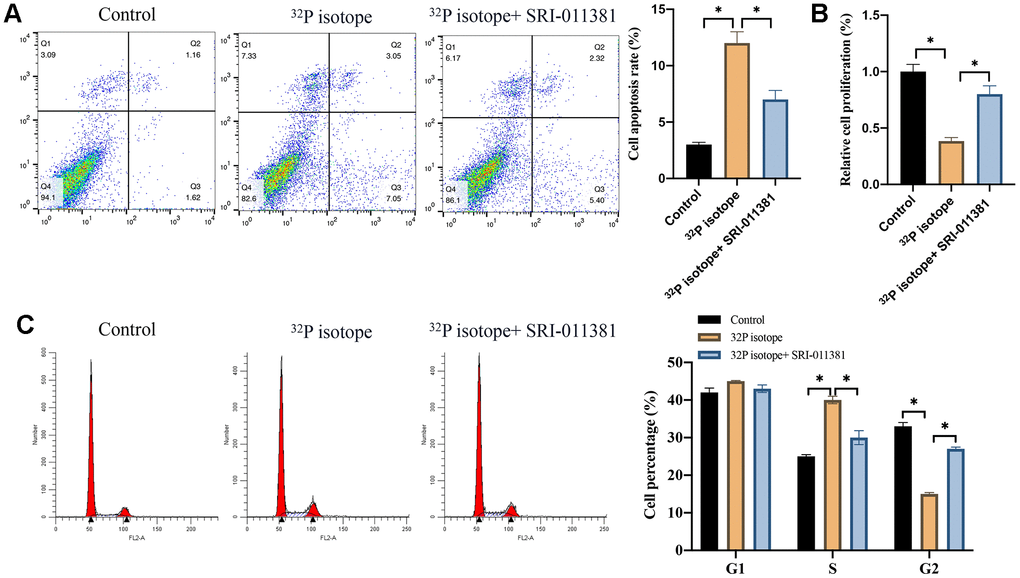 Both 32P isotope injection and skin path significantly promoted cell apoptosis and regulated cell cycle