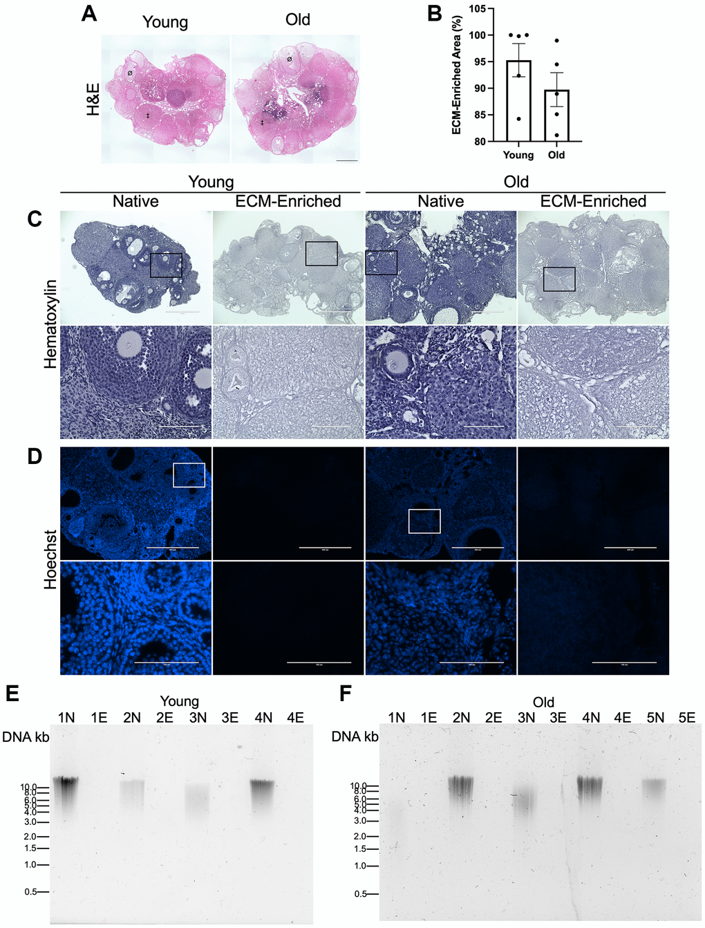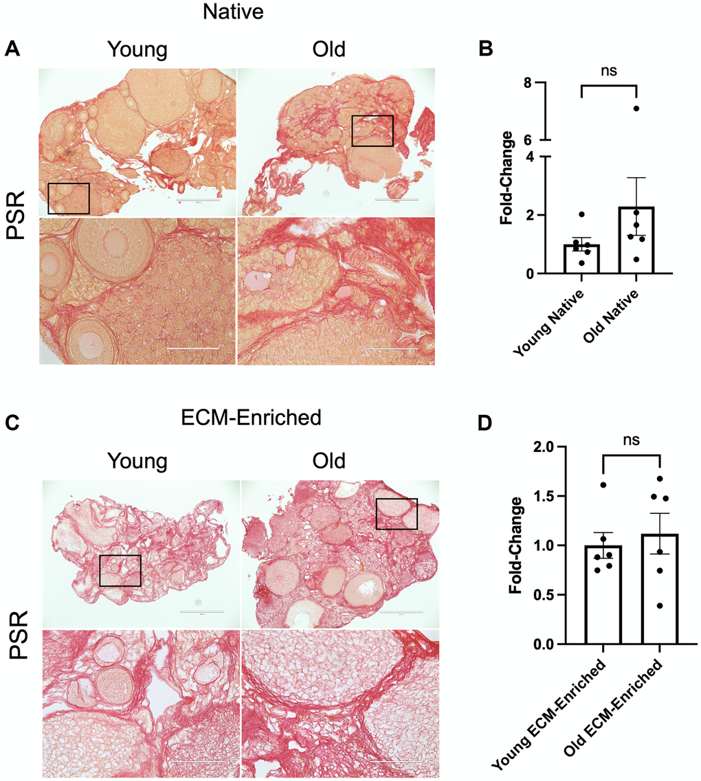 ECM-enrichment was effective in ovaries from reproductively young and old mice