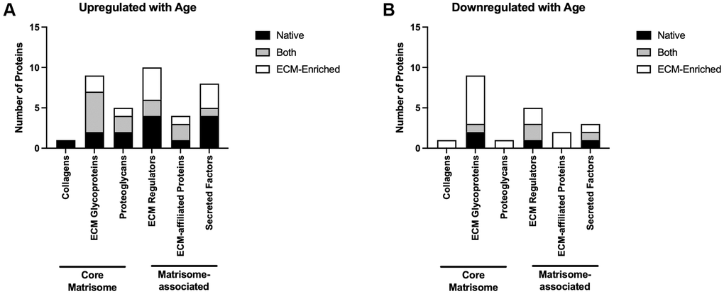 Core matrisome and matrisome-associated proteins are significantly altered with age