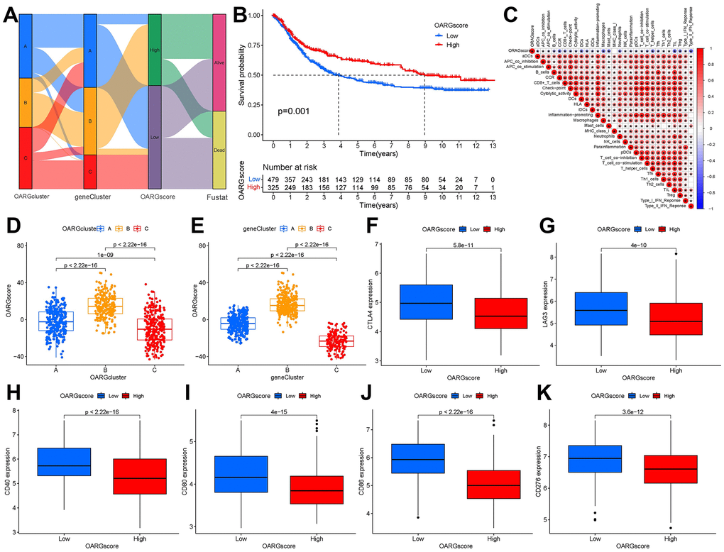 We compared the differential expression of ICGs like CTLA4, LAG3, CD40, CD80, CD86, and CD276 in groups with low- and high-OARGscore. We also acquired the Immune Checkpoint Inhibitor (ICI) Immunophenoscore (IPS) dataset from The Cancer Immunome Atlas Database [35]. The immunotherapeutic implications of the OARGscore were investigated using IPS, a reliable tool for assessing tumor immunogenicity [41].