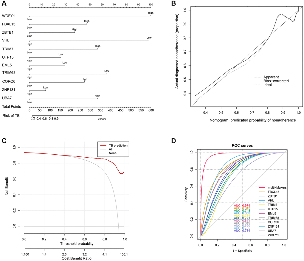 To sum up, our research thoroughly characterized 11-Ub related hub genes and identified crucial molecular disparities between TB and HC through a combination of array-based expression profiling and scRNA-seq. These findings underscore the importance of longitudinal studies to examine whether biomarkers of recent infection can predict the likelihood of developing TB, and to assist in tracing current transmission in populations. Moreover, the identified Ub-related genes could potentially be targeted for TB treatment.