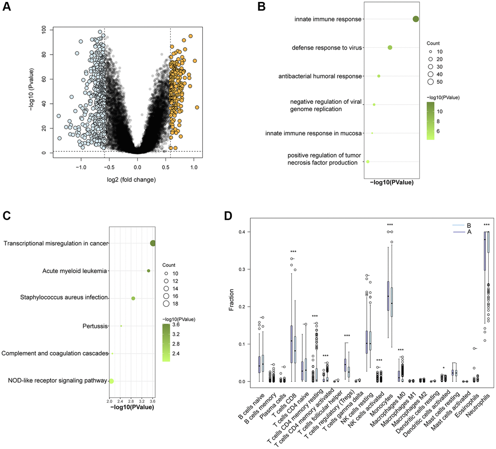 GSVA R package was used to calculate the activities of two sets for each sample. DEGs between the two Ub-related subclusters were identified using a significance cut-off of | log2 fold change (FC)| > 0.585 and P < 0.05. These DEGs were illustrated using a volcano plot. Subsequently, GO and KEGG enrichment analyses were carried out using the DAVID tool to uncover the biological functions of the identified DEGs.