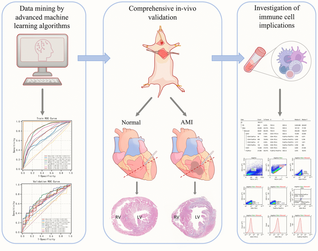 Fortunately, thanks to the rapid development in genetic engineering, microarray technology was advanced and applied in both clinical investigations and academic research. Some more new biomarkers with the potential to outperform the aforementioned were proposed in recent years. For example, Zhang et al. found that ARG1 might play a key role in the pathogenesis of AMI, which could be a biomarker of AMI and provide a reference for a more in-depth study [5]. Chen et al. identified TBX21 and PRF1 as novel diagnostic biomarkers and potential modulatory targets through comprehensive bioinformatic analytics [6]. Furthermore, the activation of the immune system after the occurrence of AMI is more and more aware by scientists and clinicians these days. Immune cell types including M2 macrophages, mast cells, and eosinophils have been proven to possess certain impacts on patients after AMI, providing new insights into the immune mechanisms of AMI pathogenesis [7]. Meanwhile, the introduction of artificial intelligence (AI) into the field of bioinformatics analytics improves the robustness of in-silico methods significantly. By combining these techniques, the discovery of even more reliable biomarkers can be expected in the foreseeable future [8].
