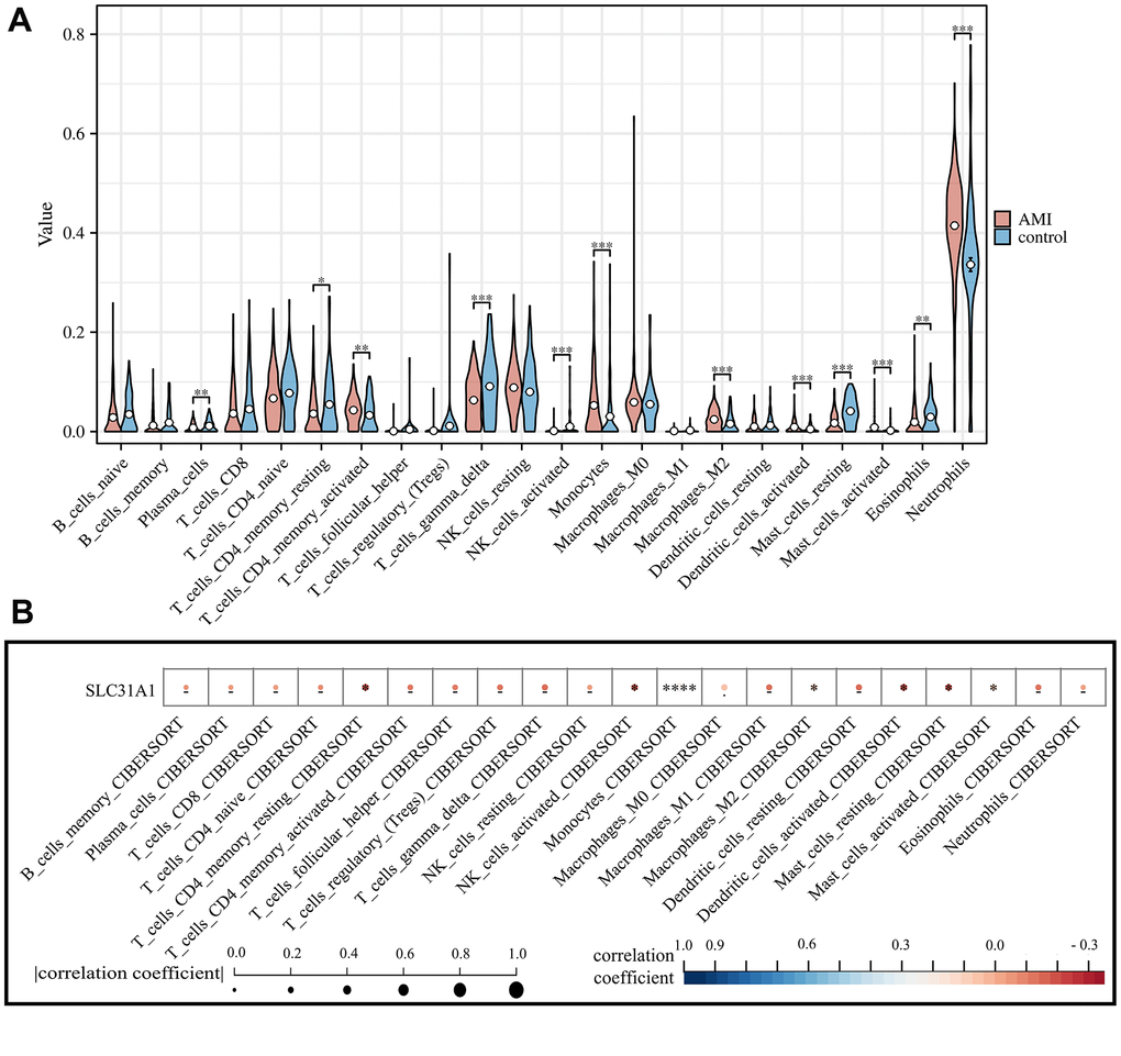Accumulated evidence had suggested that immune cells might play a critical role in the development and progression of AMI [45–48]. In particular, the infiltration of monocytes in the myocardium has been implicated in the development of ventricular remodeling and the potentially resulting heart failure [49–51]. Therefore, we were also interested in the correlation between SLC31A1 expression and various immune cell types. It turned out that there was a potentially positive association between SLC31A1 expression and the infiltration of many immune cell populations, especially monocyte. In fact, monocytes have been proven to be the versatile cells of the innate immune system, indispensable in the initial inflammatory response to injuries and subsequent wound healing processes in many tissues, including the heart [52]. As such, these findings highlighted the possible central role of SLC31A1 expression in AMI’s immune landscape and its probability in improving heart tissue recovery in the post-AMI scenario.