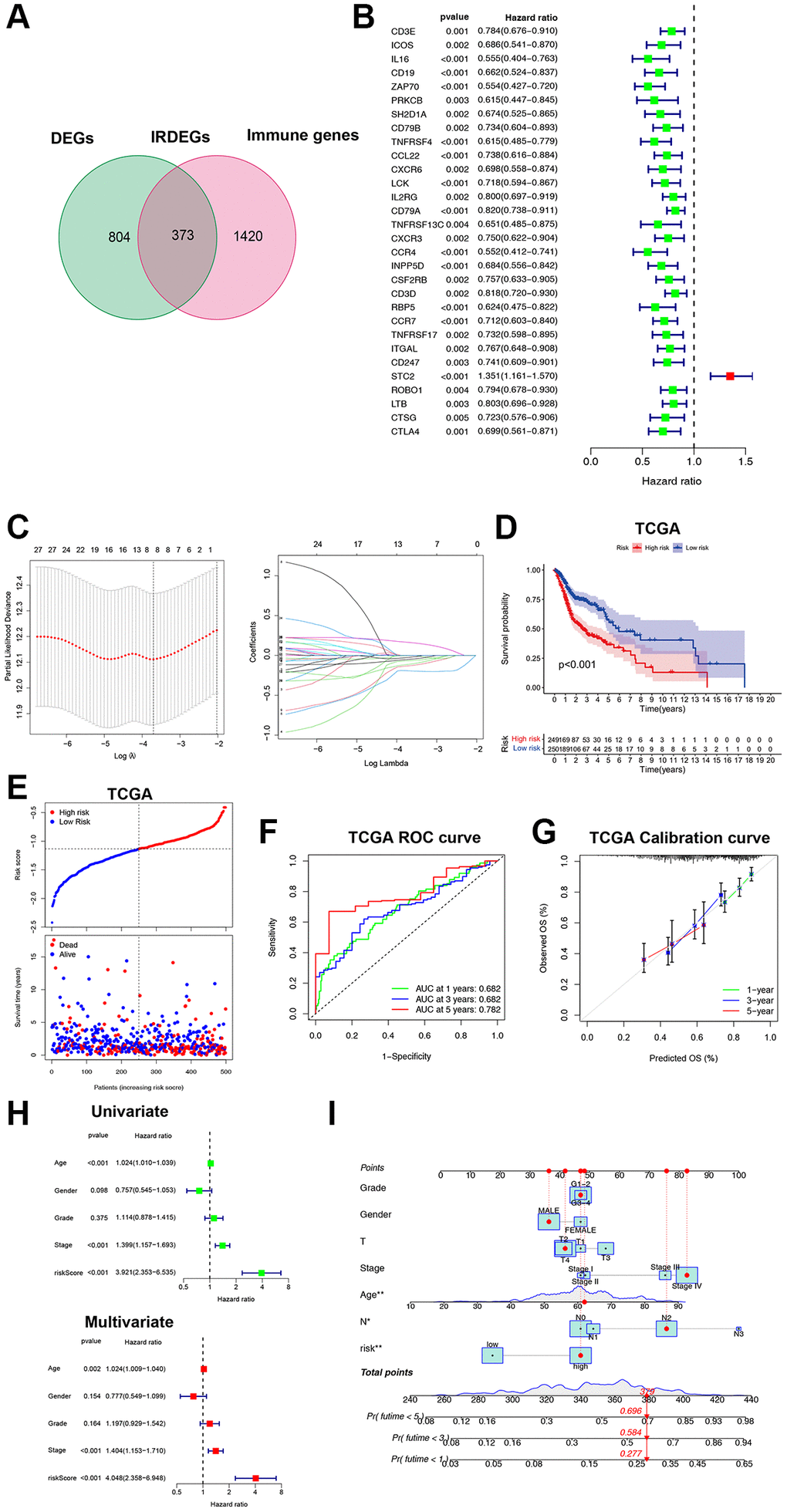 The “glmnet” package was employed to conduct lasso regression analysis and establish an ICF gene signature. For conducting univariate and multivariate survival analysis, we employed the “survival” package.