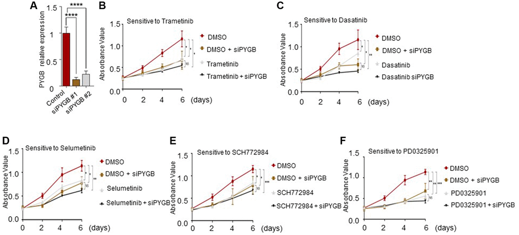 Trametinib (S2673), dasatinib (S1021), PD0325901 and selumetinib (AZD6244) were purchased from Selleck Chemicals (USA). SCH772984 was purchased from Ablome (USA). The drugs were dissolved in dimethyl sulfoxide (DMSO) to yield 5 or 10 mM stock solutions and stored at −80°C. The transfected cells were harvested during logarithmic growth phase and seeded in 96-well plates at the density of 200 cells/well in a final volume of 190 μL/well. After 24 hours, 10 μL of the respective drugs (25 nM trametinib, 1 nM dasatinib, 0–1 mM PD0325901, 2 μM SCH772984 group, and 10 nM selumetinib) was added, and the cells were cultured for 144 hours.